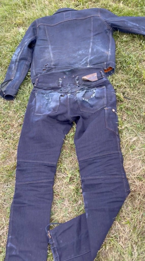Le cuir présente également un autre avantage pratique : les dommages sont généralement visibles après une chute, ce qui permet d’évaluer facilement si la combinaison peut être réutilisée.