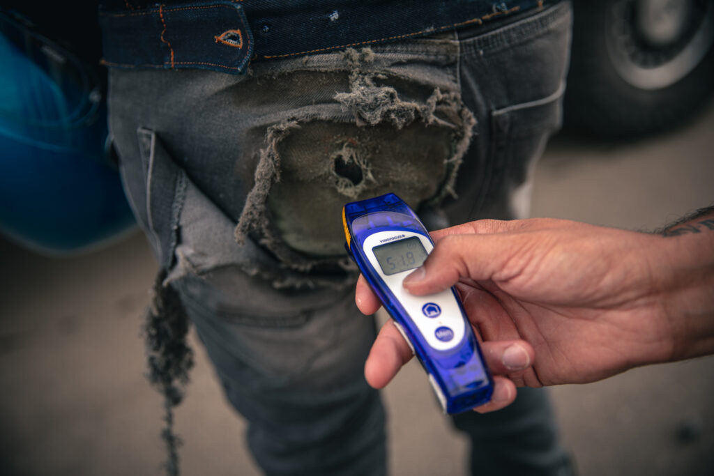Lors des ARMALITH Test Days, certains matériaux très fins ont montré qu’ils pouvaient atteindre les distances d’abrasion importantes tout en générant des températures supérieures à 100°C dès les premiers mètres de glissade. À ces niveaux thermiques, des brûlures au deuxième et troisième degrés peuvent survenir avant même que le tissu ne se perce.