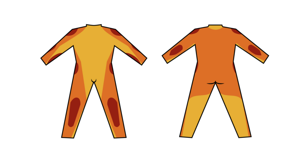La norme distingue trois zones dans le vêtement, selon leur exposition lors d’une chute :